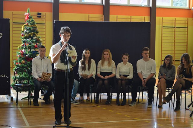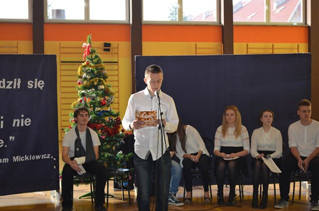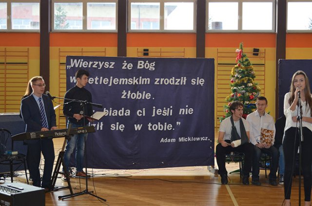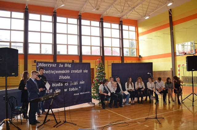 Najważniejszym wydarzenia tego dnia były przygotowane przez uczniów jasełka, których pomysłodawcą i organizatorem był ksiądz Adrian Morgaś. O oprawę muzyczną zadbał – jak zwykle – mgr Zbigniew Brzeski. Młodzież znakomicie się zaprezentowała, a na szczególne uznanie zasłużyli Patrycja Strzałka (kl. III „c” LO) i Bartosz Gajdowski (IV „a” T), którzy w duecie dali wspaniały koncert polskich kolęd.