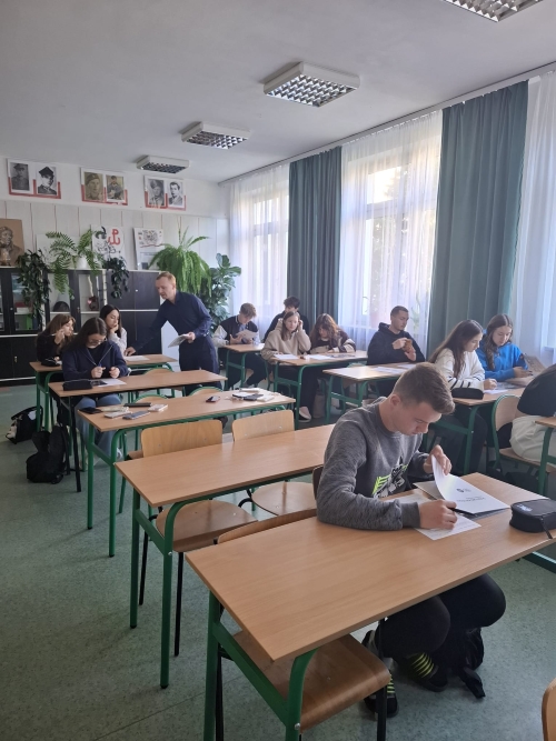 We wtorek, 21 października, uczniowie klas IV A i IV BC liceum oraz V A i V C technikum odbyli spotkanie z pracownikami Instytutu Pamięci Narodowej z Kielc Panią Edytą Krężołek i Panem Jakubem Mularczykiem. Warsztaty edukacyjne pt.:„Śledztwo Katyńskie”, w których uczniowie uczestniczyli miały formę detektywistycznego śledztwa podczas, którego należało ustalić tożsamość ofiar Zbrodni Katyńskiej. Uczniowie mieli do dyspozycji bardzo ciekawe materiały takie jak: fotografie z oryginalnymi przedmiotami należącymi do ofiar, albumy historyczne, karty pracy z zaszyfrowanymi informacjami. Taka formuła zajęć przypadła młodzieży do gustu, spowodowała, że byli zaangażowani, aktywni, zadawali dużo pytań. Udział w tych zajęciach pozwolił na rozwijanie umiejętności analizy historycznej, formułowanie wniosków, a także kształtowanie wrażliwości i empatii. Dziękujemy edukatorom z kieleckiego IPN-u za przeprowadzenie ciekawych i jakże potrzebnych zajęć pozwalających zachować pamięć o wydarzeniach związanych ze Zbrodnią Katyńską. Wyrażamy chęć udziału w podobnych lekcjach i liczymy na dalszą współpracę.