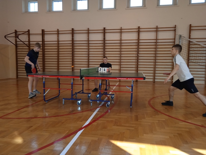 W czwartek 3 marca 2022 r. w małej sali gimnastycznej rywalizowali między sobą tenisiści stołowi. Do Mistrzostw Szkoły w grze indywidualnej zgłosiło się 21 zawodników. Turniej rozegrano systemem „do dwóch przegranych pojedynków”.