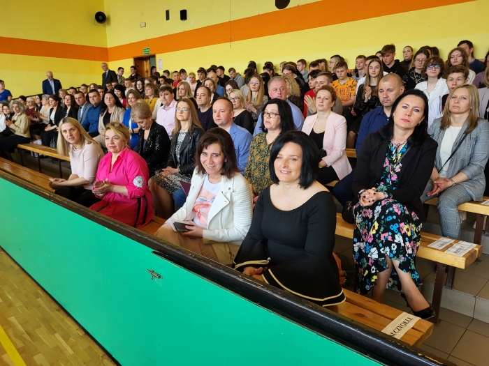 Uroczystość odbyła się w pięknie przystrojonej hali sportowej ZS w Połańcu, z wypełnionymi miejscami dla publiczności, którą stanowili nie tylko maturzyści i uczniowie młodszych klas, ale także zaproszeni goście i rodzice wyróżnionych uczniów.
