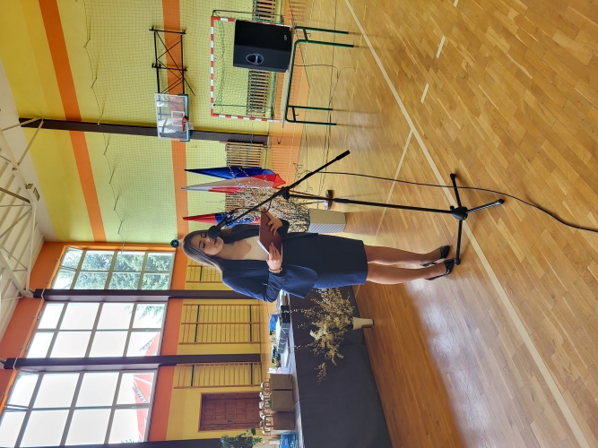 Żegnająca się z z naszą szkołą młodzież podziękowała wychowawcom i dyrekcji wspaniałymi bukietami, a przemówienie pożegnalne w jej imieniu wygłosiła była przewodnicząca Samorządu Uczniowskiego - Weronika Tworek.