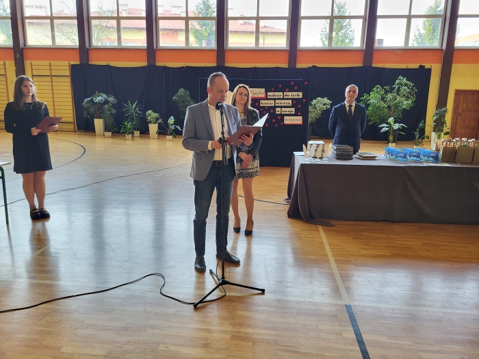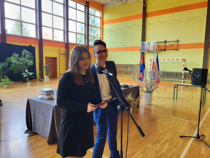 Warto podkreślić, że akademię jako konferansjerzy - w sposób wzorowy - prowadzili uczniowie szkoły, Natalia Bednarska i Jakub Czekaj.