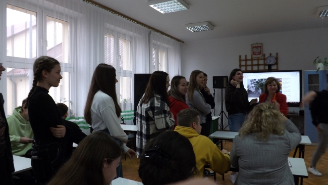 Drugim działaniem było zorganizowanie w naszej szkole Dnia Ziemi, który odbył się dnia 22 kwietnia. Uczniowie z klasy 2AB i 1AC mieli okazję uczestniczyć w zajęciach o ekologii i dbaniu o środowisko. Podczas tych zajęć odbył się konkurs na najlepszą pracę o zagrożonych i objętych ochroną gatunkach zwierząt i roślin w Polsce oraz konkurs na segregacje odpadów.