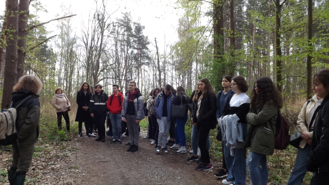 Trzecim podjętym działaniem była wycieczka do lasu na spotkanie z Panią leśnik, w której udział wzięły klasy 2AB i 3BC. Pani leśnik zapoznała nas z ustawami o ochronie środowiska oraz z życiem lasu.