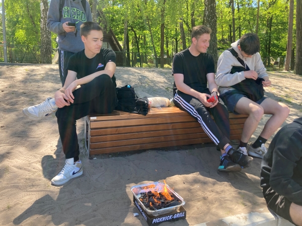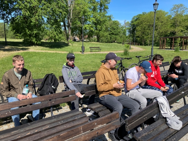 W trakcie godzinnego pobytu był czas na zapoznanie się z historią powstania kąpieliska i kiełbaskę z grilla. Niektórym wystarczyło jeszcze siły na trening bokserski i grę w piłkę siatkową. Po miło spędzonym przedpołudniu przyszedł czas powrotu. Po drodze zrobiło się upalnie, więc niejeden uczestnik wyprawy marzył o “elektryku”, jednak po kilkudziesięciu minutach wszyscy szczęśliwie dotarliśmy do Połańca.