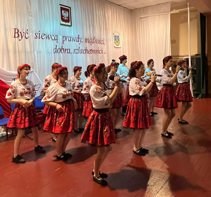 13 października 2022 roku obchodziliśmy Powiatowy Dzień Edukacji Narodowej w Staszowie. Nasza grupa "Sikoreczki" z projektu Erasmus+ pojechała, by zaprezentować swoje talenty. Ala Brzeska, Aleksandra Zybała, Julia Kowalska, Magdalena Jońca, Martyna Mądra, Michał Wojtaszewski, Patrycja Krzystek, Maja Grzyb, Natalia Zabłocka, Magdalena Kaczmarczyk, Natalia Pedyńska, Olga Łabęcka, Patrycja Motyl, Roksana Gęca i Sylwia Kufel to uczniowie, którzy starali się jak najlepiej wypromować naszą szkołę i udało im się to znakomicie. Przed ich występem, czyli zatańczeniem tradycyjnego poloneza, a także zaśpiewaniem "Lipki" i "Takiego Janicka", głos zabrał kierownik projektu - pan Zbigniew Brzeski. Grupą podczas wyjazdu opiekowali się także Pani dyrektor Dorota Wysocka, odpowiedzialna za choreografię, oraz Ryszard Lewalski, etnograf projektu.