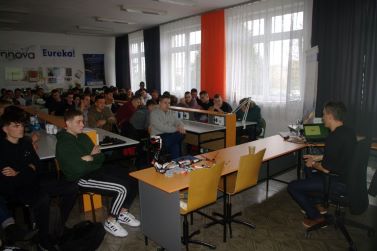 Damian niezwykle barwnie i interesująco opowiadał o tym jak się pracuje i mieszka w Szwecji, na czym polega jego praca w ABB oraz udzielił wielu fantastycznych rad młodym ludziom (uczniowie klas IIIA, IVA i IVAD naszego ELEKTRONIKA i ELEKTRYKA)