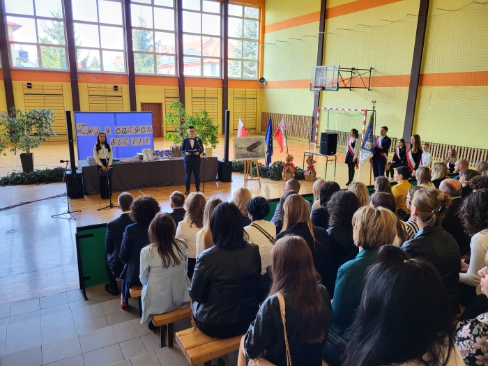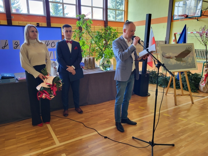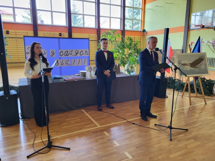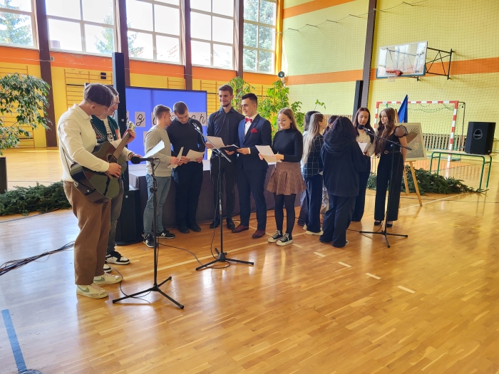Po części oficjalnej przyszedł czas na występy artystyczne. Aplauz wywołał znakomity występ taneczno-akrobatyczny tria dziewcząt z klasy I A LO. Po tańcu przyszedł czas na śpiew, w którym prym wiedli uczniowie z niezawodnej IV AD naszego technikum, wspomagani przez liczne grono wokalistek. Uroczystość znakomicie poprowadzili konferansjerzy - Oliwia Wróbel z II AC LO i Paweł Bednarski z IV AD T.