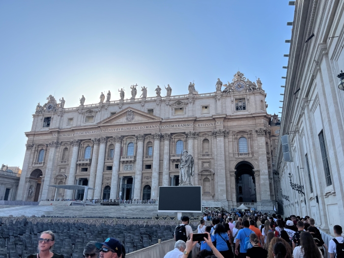 Leniwe przedpołudnie uczniowie spędzili na plaży. Te chwile odpoczynku zrekompensowały dotychczasowe trudy wycieczki objazdowej. Niektórzy wybrali się na krótką wycieczkę, by zobaczyć pobliski urokliwy pałac Castello di Santa Severa. Po południu młodzież zwiedziła najmniejsze państwo świata, liczące zaledwie 440 ha, czyli Watykan. Stolicę Piotrową zaczęliśmy zwiedzać od Placu i Bazyliki Św. Piotra. Szczególne wrażenie zrobiło na nas słynne okno papieskie. Nie omieszkaliśmy też zobaczyć grobu naszego rodaka - papieża Jana Pawła II. Intensywny dzień zakończyliśmy zakupami pamiątek watykańskich.