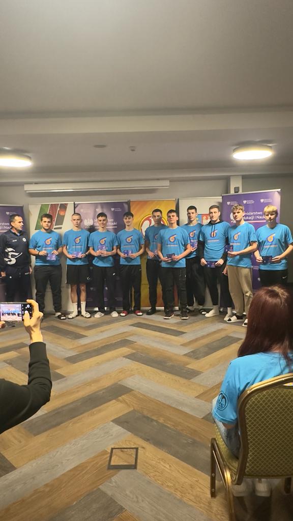 Grupa uczniów naszej szkoły wzięła udział w projekcie ,,Młodzieżowy Sędzia Sportowy – kształcenie animatorów sportu szkolnego”. Zajęcia z przepisów i zasad gry w koszykówkę odbywały się w Zespole Szkół w Połańcu w październiku i listopadzie. Podsumowaniem tego projektu, sfinansowanego przez Ministerstwo Edukacji i Nauki, były trzydniowe praktyczne konsultacje, które odbyły się od 6 do 8 grudnia 2023 r. w Suchedniowie. Konsultacje zakończyły się egzaminem kwalifikacyjnym, który zdali wszyscy nasi uczniowie. Podczas uroczystego zakończenia projektu jego uczestnicy otrzymali: koszulki, gwizdki sędziowskie oraz legitymacje Młodzieżowego Sędziego Sportu. W szkoleniu udział wzięli: Bartosz Dąbrowski, Filip Kula, Wiktor Lesiak, Hubert Macias, Kacper Maćkowski, Mateusz Pacyga, Mikołaj Potyrało, Hubert Skuta, Oskar Sojka, Bartosz Szucki.