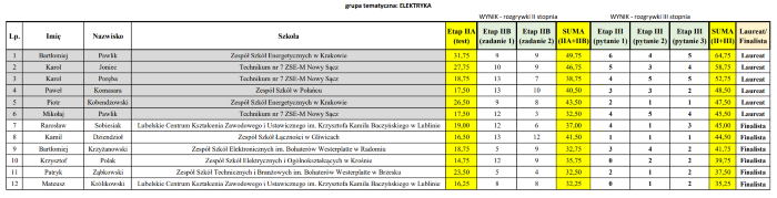 Na liście finalistów i laureatów od lat pojawiają się uczniowie z najlepszych TECHNIKÓW w Polsce (Kraków, Białystok, Lublin, Nowy Sącz,... i Połaniec). A teraz najlepsze - Paweł zdobył tytuł laureata w kategorii ELEKTRYKA (co świadczy o jego niesamowitej wszechstronności, bo przecież jest ELEKTRONIKIEM).