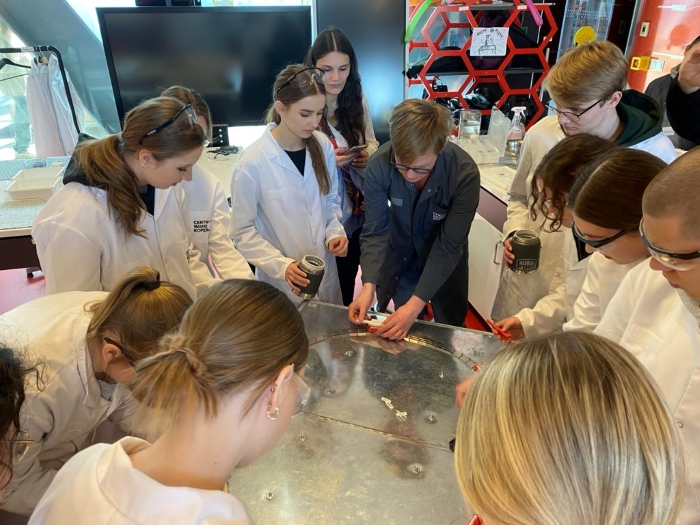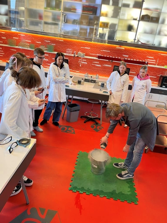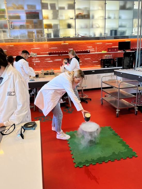 W ramach realizacji projektu "Dziś uczeń - jutro student" 26 i 27 marca 2024 r. dwie grupy uczniów uczestniczyły w wyjazdowych szkoleniach edukacyjnych. Tym razem młodzież miała okazję brać udział w zajęciach laboratoryjnych z fizyki i chemii zorganizowanych przez Centrum Nauki Kopernik w Warszawie. Lekcje z wykorzystaniem ciekłego azotu i suchego lodu okazały się bardzo ciekawe. Uczniowie doświadczyli bardzo niskich temperatur, przekonali się również, czym jest temperatura i jaki ma wpływ na materiały o różnym stanie skupienia. Z kolei w laboratorium chemicznym młodzież dowiedziała się tego, że dzięki odpowiednim metodom naukowym powietrze naprawdę można zobaczyć. W części wystawowej stacje doświadczalne cieszyły się ogromnym zainteresowaniem młodzieży. Zapraszamy na poniższą fotorelację.