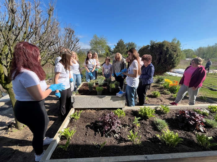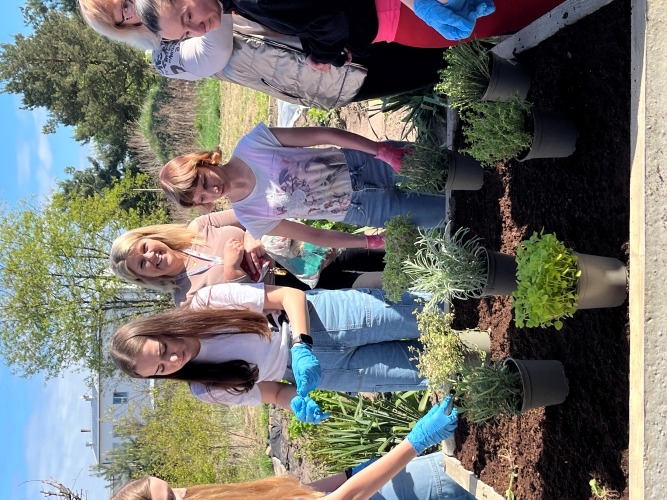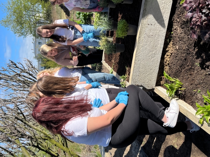 Tym razem z uśmiechem, życzliwym słowem, chęcią pomocy oraz propozycją dobrej zabawy odwiedziliśmy Warsztat Terapii Zajęciowej w Połańcu - jego podopiecznych i pracowników. Pogoda dopisała, więc pod okiem Pani Niny, przy współudziale znawczyń ziół, przystąpiliśmy do zakładania zielnika, a następnie sadzenia drzewek. Dla większości z nas to zupełnie nowe doświadczenie, ale przy pomocy uczestników zajęć i dzięki fachowym wskazówkom, poradziliśmy sobie bez trudu.