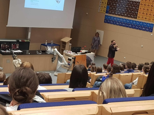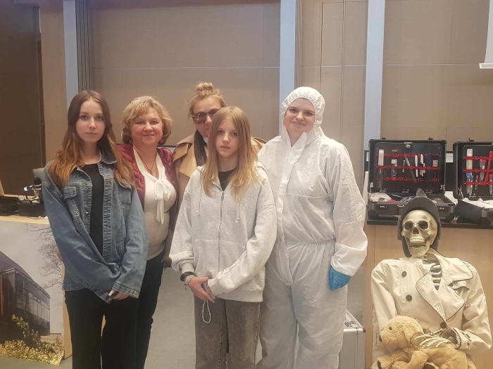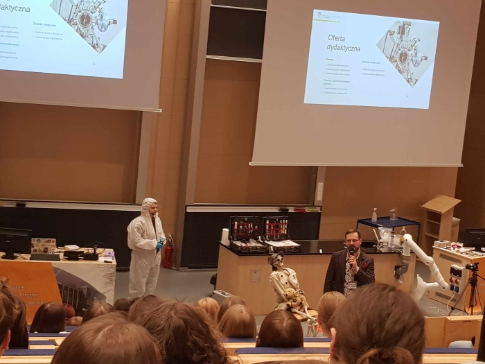 Następnie udaliśmy się na dzień otwarty na wydział chemii UJ w Krakowie. Głównym tematem pokazów były zastosowania chemii w dziedzinie kryminalistyki, a sam wykład nosił nazwę: „Sherlock Holmes vs. detektywi CSI - kryminalistka dawniej i dziś”. Prowadząca pokazała młodzieży wiele ciekawych badań, które przeprowadza się bezpośrednio na miejscu zdarzenia. Uczniowie bardzo chętnie brali udział w pokazie i z zaciekawieniem oglądali przeprowadzone badania.
