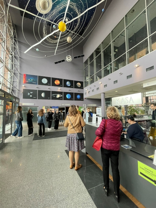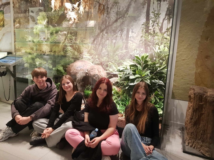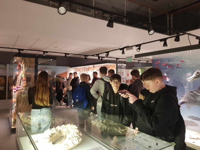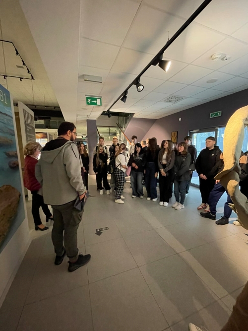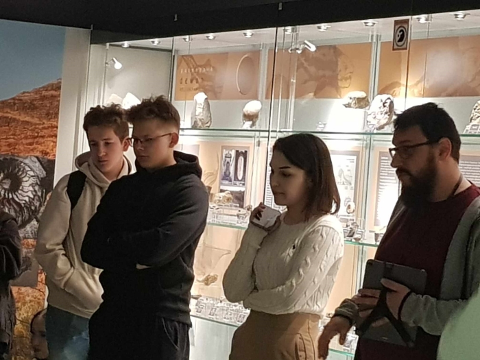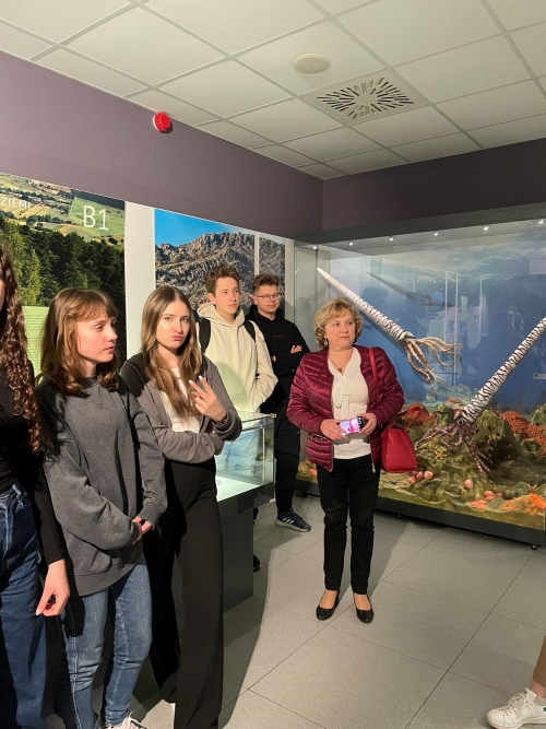 Następnie około godziny 13:00 dojechaliśmy do Centrum Edukacji Przyrodniczej na UJ w Krakowie, gdzie zostaliśmy podzieleni na dwie 25-osobowe grupy. Obejrzeliśmy tam ciekawe wystawy z zakresu geologii i zoologii. Przeprowadzony przez Pana przewodnika wykład był bardzo interesujący, a młodzież bardzo chętnie uczestniczyła w tej wystawie.