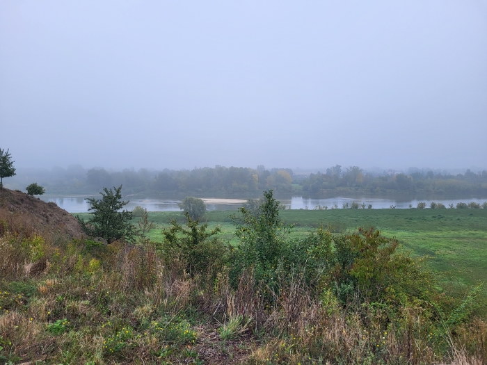 Wyruszyliśmy ze szkoły punktualnie o godzinie 9:00, a poranek był dość ponury, choć ciepły. Szybko okazało się jednak, że poranne mgły mają dużo uroku, gdyż potrafią zmienić pajęczyny w niezwykłe korale. Swe kroki skierowaliśmy najpierw w stronę połanieckiej skarpy, gdzie nasz geograf fachowo wyjaśnił, skąd wzięły się połanieckie lessy. Była to ciekawa lekcja, bo odbywała się zaledwie kilka metrów od omawianego obiektu. Następnie udaliśmy się na taras widokowy, gdzie mogliśmy zapoznać się z "pracą" wiślanej skarpy, której efekty bez trudu można dojrzeć na drodze i barierkach wybudowanych wzdłuż osuwiska.