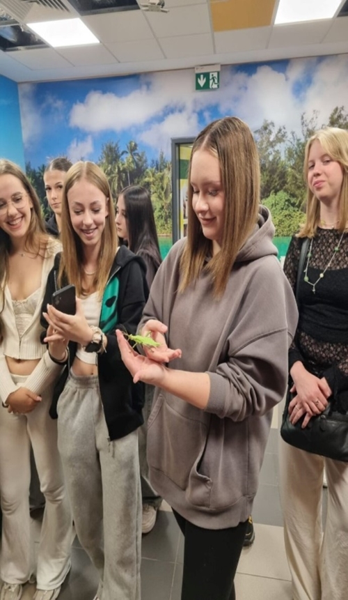 Kolejnym punktem naszej wycieczki były warsztaty i zbiory entomologiczne. Pani przewodnik w ciekawy sposób przeprowadziła z nami warsztaty dotyczące niezwykłego świata owadów. Prócz wypreparowanych owadów nie zabrakło również żywych zwierząt umieszczonych w specjalnie do tego przygotowanych terrariach. Spotkanie z fascynującym światem owadów pozwoliło nam przełamać stereotypowe myślenie i odpowiedzieć na pytanie, co właściwie wiemy o owadach.