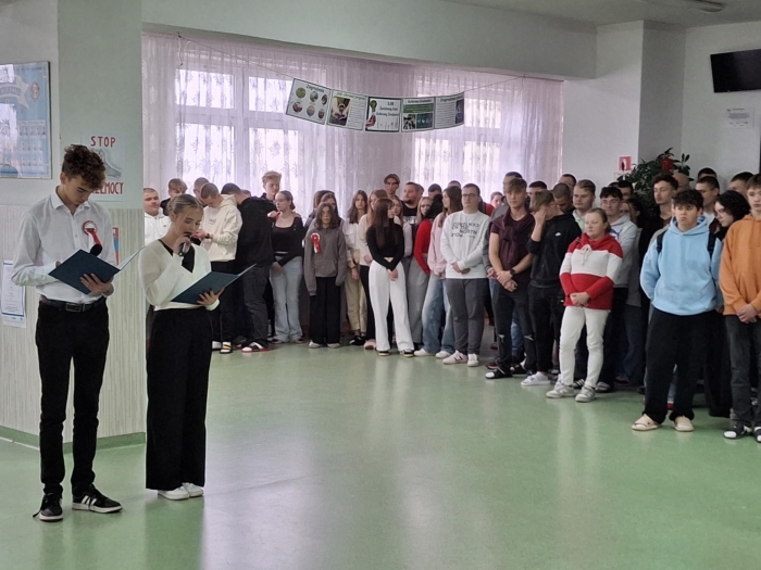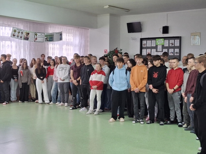 Zgromadzona młodzież, wraz ze swoimi nauczycielami, odśpiewała hymn państwowy, by w ten symboliczny sposób uczcić Narodowe Święto Niepodległości. Następnie Julia Kowalska oraz Szymon Kiełb przybliżyli zgromadzonym historię walki Polaków o upragnioną wolność.