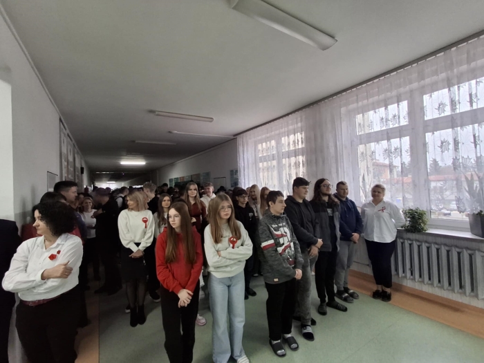 Podczas długiej przerwy młodzież mogła zapoznać się z przygotowaną przez samorząd szkolny prezentacją oraz posłuchać pięknych i wzruszających polskich pieśni patriotycznych.