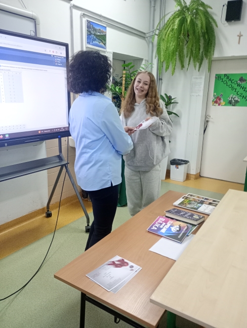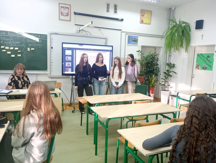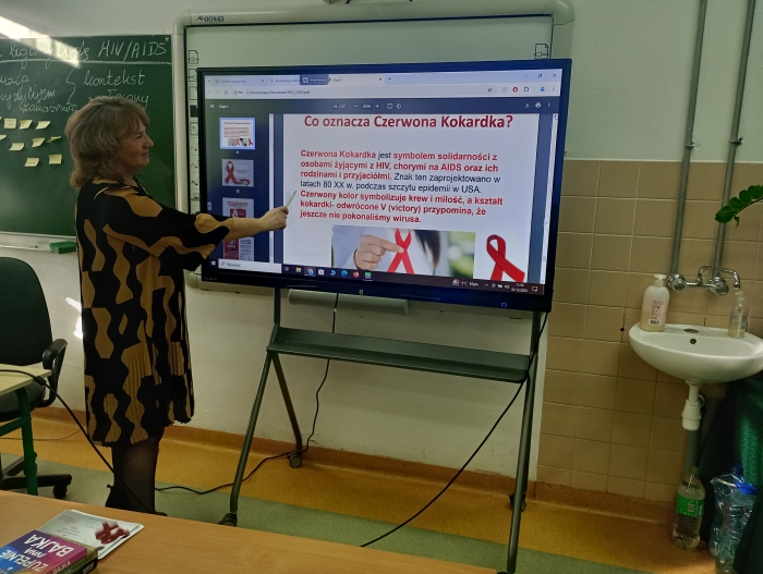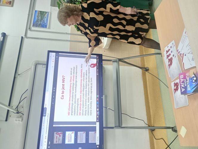 2 grudnia w naszej szkole zostały przeprowadzone zajęcia warsztatowe „Profilaktyka HIV/AIDS” w klasach o profilu biologiczno-chemicznym. Zajęcia zostały przygotowane w ramach Światowego Dnia Walki z AIDS, którego celem jest uwrażliwienie na problem oraz solidaryzowanie się z ludźmi dotkniętymi tą chorobą. Jest to ważna data, która integruje wiele działań związanych z profilaktyką HIV/AIDS, podejmowanych na całym świecie. W naszej szkole przeprowadzone zajęcia miały na celu: poprawić świadomość młodzieży na temat zachowań ryzykownych, zwiększyć poczucie bezpieczeństwa, uczyć, jak reagować w sytuacjach zagrożenia. Program zajęć był bardzo bogaty. Najpierw uczniowie przygotowali gazetkę szkolną o tej tematyce oraz zaprezentowali swoje projekty zakładek i ulotek, spośród których wybrano i nagrodzono najładniejsze. Kolejnym etapem zajęć było sprawdzenie poziomu świadomości uczniów o HIV/AIDS poprzez zapisywanie swoich skojarzeń na ten temat. Następnie uczniowie wysłuchali przygotowanej prelekcji. Część warsztatowa polegała na przeprowadzeniu młodzieżowej kampanii informacyjnej, która była pracą w grupach, a uczestnicy mieli przygotować krótkie wystąpienia, w czasie których dzielili się swoją wiedzą na temat HIV/AIDS. Konwencją tych wystąpień były wiadomości telewizyjne: krótki komunikat, reportaż, wywiad, sonda. Trzeba przyznać, że młodzież bardzo poważnie podeszła do tego zadania i doskonale się z niego wywiązała. Ostatnim etapem był szkolny konkurs wiedzy o HIV/AIDS, który wyłonił zwycięzców nagrodzonych dyplomami i książkami. Organizatorki tego przedsięwzięcia bardzo dziękują Radzie Rodziców za ufundowanie nagród książkowych, które podniosły rangę tego szkolnego wydarzenia. Mamy nadzieję, że zajęcia profilaktyczne przypadły uczestnikom do gustu i były dla nich źródłem wiedzy. Dokonując podsumowania tych profilaktycznych działań, pamiętajmy o tym, że najskuteczniejszym środkiem zapobiegania zakażeniom HIV jest efektywna i systematyczna profilaktyka oraz edukacja zdrowotna.