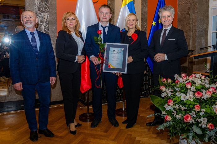 Mamy szczególną satysfakcję, ponieważ Ernest jest jedynym uczniem reprezentującym nauki techniczne wśród nagrodzonych (6 to laureaci lub finaliści olimpiad humanistycznych i 6 - konkursów tanecznych i muzycznych). Jest on również jedynym uczniem reprezentującym nasz powiat. Dodatkowo w Eruopejskim Centrum Bajki w dniu 11.11.2025 otrzymał prestiżowy LAUR PACANOWSKI - nagrodę w kategorii NAUKA.