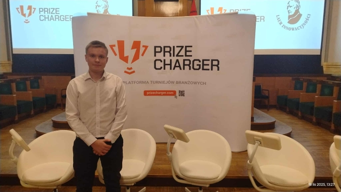 Na zdjęciach (Urząd Marszałkowski Województwa Świętokrzyskiego i archiwum prywatne): Ernest w trakcji uroczystej gali oraz w czasie finałów ogólnopolskiego PRIZE CHARGER (AGH Kraków - 18.11.2025)