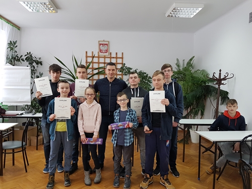 Jako organizator turnieju pragnę podziękować wszystkim uczestnikom za sportową rywalizację prowadzoną w duchu fair play. Cieszy mnie niezmiernie fakt, że szachy rozwijają się nie tylko w naszej szkole, ale i na terenie całej gminy Połaniec. Warto zawsze podkreślać, że ta intelektualna rozrywka ma ogromny, pozytywny wpływ na rozwój umysłowy dzieci i młodzieży. Szachiści zwykle osiągają lepsze od rówieśników wyniki w naukach ścisłych, rozwijają umiejętność krytycznego postrzegania rzeczywistości i uczą się odpowiedzialności za podejmowane decyzje. Ciekawostką jest fakt, że najlepsi szachiści – nawet kiedy zrezygnują z kariery sportowej – osiągają sukcesy w biznesie. Myślę, że najlepszym podsumowaniem mojego tekstu będą słowa Paula Morphy’ego, szachowego geniusza z XIX wieku: „Nauczcie dzieci grać w szachy, a o ich przyszłość możecie być spokojni”.