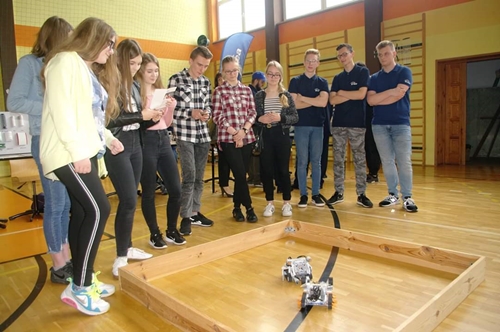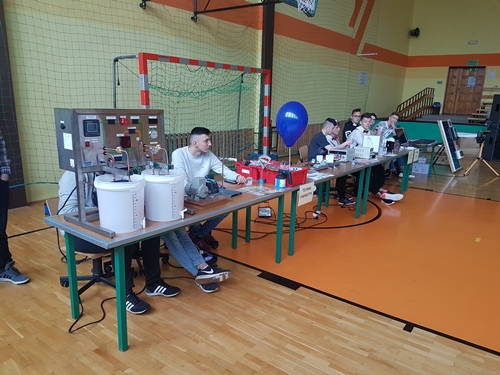 Punktualnie o godz. 10:00 rozpoczął się pierwszy etap Konkursu, który miał formę testu składającego się z 30 pytań. Uczestnicy mieli na jego rozwiązanie dokładnie 30 minut. Wszystko przebiegało sprawnie, więc zgodnie z przyjętym wcześniej planem po upływie czasu przeznaczonego na test zawodnicy udali się do szkolnej hali sportowej, gdzie mogli zapoznać się z ofertą Technikum w Połańcu, a kilkuosobowa komisja konkursowa zaczęła wytężoną pracę, aby w możliwie krótkim czasie sprawdzić testy i sporządzić protokół z pierwszego etapu Konkursu.
