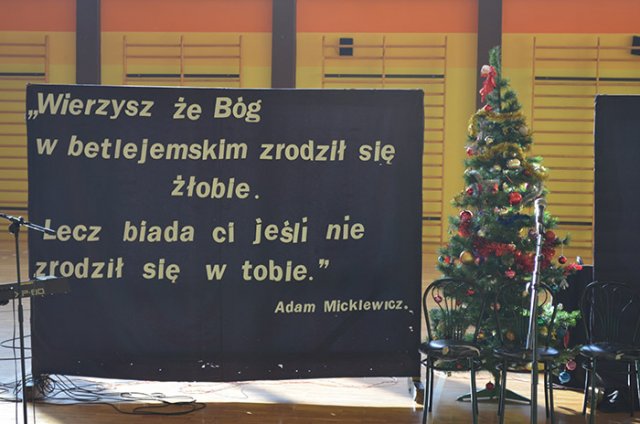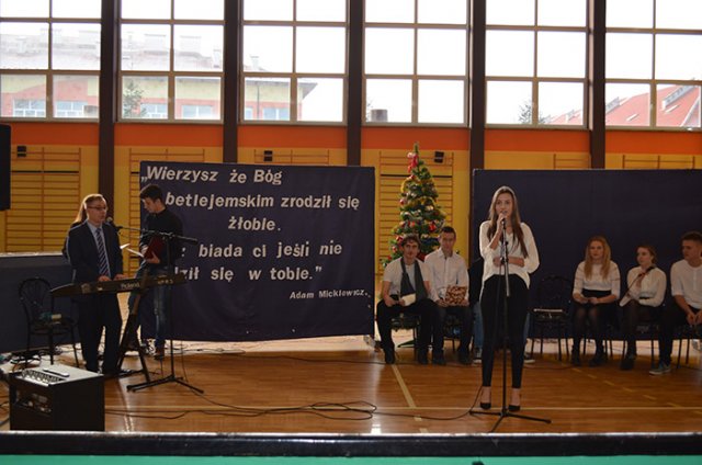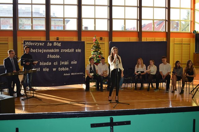 Najważniejszym wydarzenia tego dnia były przygotowane przez uczniów jasełka, których pomysłodawcą i organizatorem był ksiądz Adrian Morgaś. O oprawę muzyczną zadbał – jak zwykle – mgr Zbigniew Brzeski. Młodzież znakomicie się zaprezentowała, a na szczególne uznanie zasłużyli Patrycja Strzałka (kl. III „c” LO) i Bartosz Gajdowski (IV „a” T), którzy w duecie dali wspaniały koncert polskich kolęd.