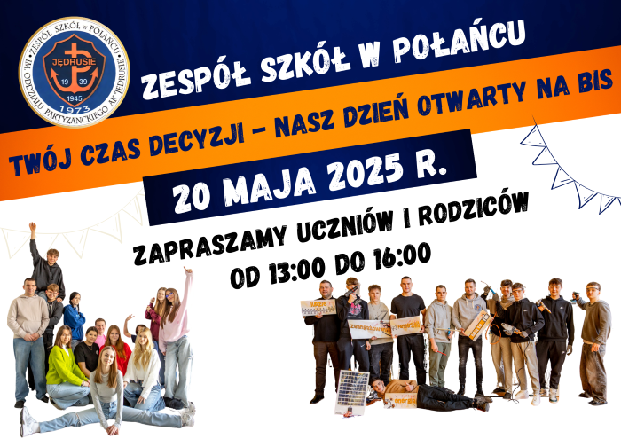 Już 20 maja 2025 roku zapraszamy wszystkich uczniów i ich rodziców na wyjątkowe wydarzenie – Dzień Otwarty na BIS w Zespole Szkół w Połańcu! To doskonała okazja, by poznać szkołę od środka, porozmawiać z uczniami i nauczycielami, a także zobaczyć, co sprawia, że „Jędrusie” to miejsce pełne energii, zaangażowania i pasji. Czekamy na Was w godzinach 13:00–16:00 – przyjdź, zobacz i zdecyduj o swojej przyszłości z nami!