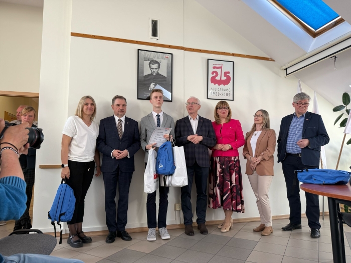 29 kwietnia br. w siedzibie Regionu Świętokrzyskiego NSZZ „Solidarność” w Kielcach rozdano nagrody w XXI Wojewódzkim Konkursie Wiedzy o Niezależnym Samorządnym Związku Zawodowym "Solidarność”. Konkurs był niezwykle wymagający. Na etapie wojewódzkim tematyka konkursu obejmowała nie tylko historię „Solidarności”, ale także zagadnienia społeczne, wiedzę o ruchu związkowym w Polsce i na świecie oraz wydarzenia związane z najnowszą historią Polski. Wytrwałość, ciężka i sumienna praca przyniosły efekty. Najlepszy okazał się Szymon Kiełb, uczeń klasy IIALO. Na podium znalazł się również Adam Maćkowiak, uczeń klasy III A LO, który zajął III miejsce. Chłopcy zdobyli cenne nagrody. Szymon został nagrodzony laptopem, a Adam otrzymał wysokiej klasy tablet. Pozostali nasi finaliści tj. Kamil Moryto, Karol Banaś i Igor Sadłocha tym razem nie zdobyli nagród. Pomimo to gratulujemy im zaangażowania i woli walki.