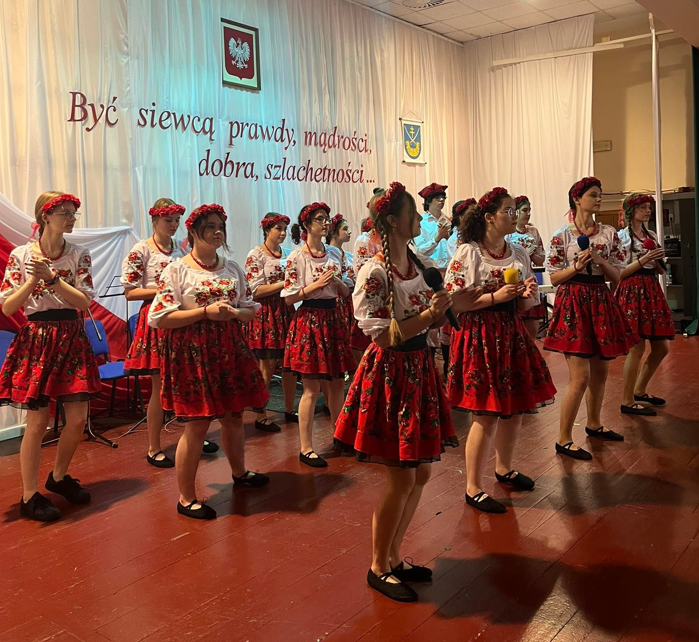13 października 2022 roku obchodziliśmy Powiatowy Dzień Edukacji Narodowej w Staszowie. Nasza grupa "Sikoreczki" z projektu Erasmus+ pojechała, by zaprezentować swoje talenty. Ala Brzeska, Aleksandra Zybała, Julia Kowalska, Magdalena Jońca, Martyna Mądra, Michał Wojtaszewski, Patrycja Krzystek, Maja Grzyb, Natalia Zabłocka, Magdalena Kaczmarczyk, Natalia Pedyńska, Olga Łabęcka, Patrycja Motyl, Roksana Gęca i Sylwia Kufel to uczniowie, którzy starali się jak najlepiej wypromować naszą szkołę i udało im się to znakomicie. Przed ich występem, czyli zatańczeniem tradycyjnego poloneza, a także zaśpiewaniem "Lipki" i "Takiego Janicka", głos zabrał kierownik projektu - pan Zbigniew Brzeski. Grupą podczas wyjazdu opiekowali się także Pani dyrektor Dorota Wysocka, odpowiedzialna za choreografię, oraz Ryszard Lewalski, etnograf projektu.