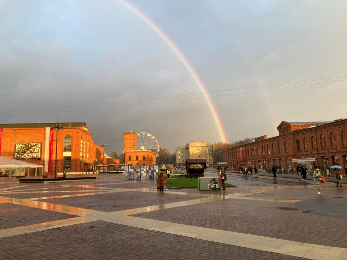 Kolejny punkt to zwiedzanie ulicy Piotrkowskiej. Bardzo klimatyczne okazały się dziedzińce zabytkowych kamienic. Jednym z nich był Pasaż Róż. Realizacja projektu była bardzo pracochłonna, polegała na wyklejaniu kawałkami pociętych luster ścian kamienicy. Zwieńczeniem dnia była wizyta w Księżym Młynie.