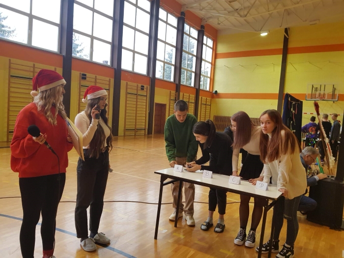 6 grudnia mamy święto, które obchodzi się na cześć św. Mikołaja z Miry, katolickiego biskupa i świętego, którego wizerunek w innych religiach, regionach i kulturach przybiera też miano Dziadka Mroza i Gwiazdora. Co ciekawe, postać ta ma niewiele wspólnego z wizerunkiem Mikołaja, którego znamy i rozpowszechniamy. Również u nas w szkole obchodziliśmy mikołajki. Samorząd szkolny zorganizował teleturniej na wzór znanego "Postaw na milion", w którym uczniowie ze wszystkich klas dobrali się w 4-osobowe grupy i rywalizowali o wygraną. Towarzyszyło temu wiele śmiechu i przedświątecznej atmosfery. W świąteczny nastrój wprowadziły nas też uczennice klasy 2cLO Natalia Szkwarek wraz z uczennicą klasy 3abLO Nataszą Liśkiewicz, które na rozpoczęcie i zakończenie zabawy zaśpiewały utwory: "A kto wie czy za rogiem" i "Zaśnieżone miasta". Dziewczynom w zrealizowaniu występu pomógł Pan Zbigniew Brzeski, a opiekę nad całym wydarzeniem sprawowały pani Dorota Płachecka i pani Urszula Górska.