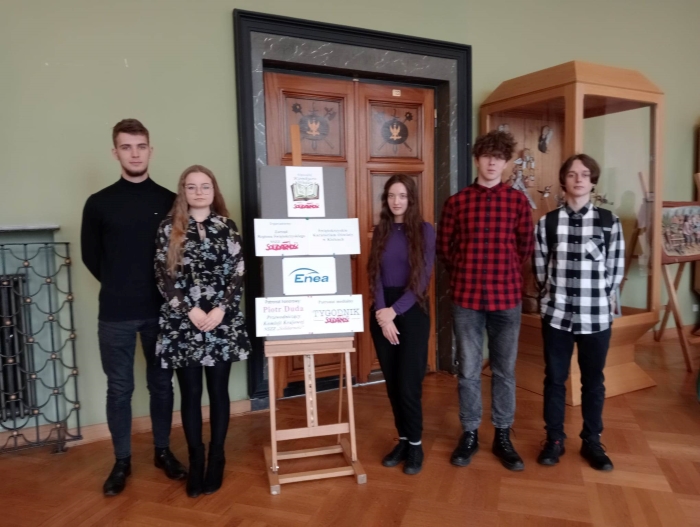 Z naszej szkoły do finału awansowało aż pięciu uczniów: Jakub Fikier (1AT), Justyna Krokosz (3BCLO), Anita Wrona (4BCT), Tomasz Stępień (3AT), Bartłomiej Czosnek (4ADT). Głównym celem konkursu było poszerzenie wiedzy o ruchu związkowym w Polsce i na świecie oraz przybliżenie młodzieży celów i funkcji działalności związków zawodowych jako jednego z głównych, konstytucyjnych filarów demokratycznego państwa. Wyniki konkursu były utrzymywane w tajemnicy do 18 kwietnia. Wręczenie nagród laureatom odbyło się siedzibie Enea Elektrownia Połaniec SA w Zawadzie. Dodatkową atrakcją była możliwość zwiedzenia Elektrowni. Uroczystość rozpoczęto od złożenia kwiatów pod obeliskiem upamiętniającym powstanie „Solidarności” na terenie połanieckiej Elektrowni. Wręczenie nagród miało miejsce w sali konferencyjnej. Aż trzech uczniów naszej szkoły zostało nagrodzonych wartościowymi nagrodami. III miejsce ex aequo zajęły Justyna Krokosz i Anita Wrona. Dziewczęta otrzymały tablety. VI miejsce zajął Bartłomiej Czosnek. Otrzymał słuchawki bezprzewodowe. Serdecznie gratulujemy! Dziękujemy również pozostałym uczniom za trud włożony w przygotowania do konkursu i udział w tym wydarzeniu. Wierzymy, że zdobyta wiedza zaprocentuje i pozwoli młodzieży lepiej zrozumieć proces transformacji ustrojowej oraz dzisiejszą rzeczywistość będącą efektem ciągłości procesów historycznych zgodnie z ideą: „Wszystko co jest, wyrasta z tego, co było”.