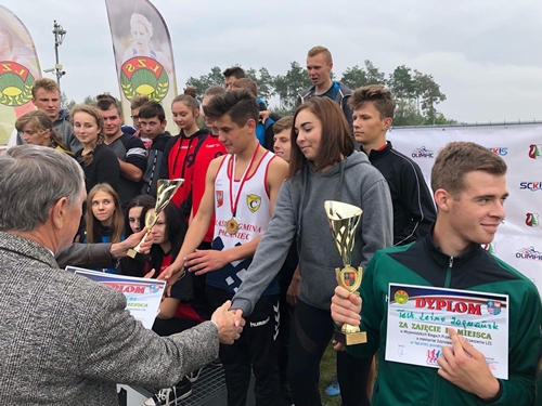 25 września w Strawczynie odbyły się XX Wojewódzkie Biegi Przełajowe Zrzeszenie LZS o Memoriał Zdzisława Stawiarza. Bardzo dobrze spisali się nasi biegacze, którzy w klasyfikacji drużynowej szkół (mimo czteroosobowej drużyny) zajęli zaszczytne III miejsce. Indywidualnie I miejsce w kategorii chłopców zajął Dominik Rugała z klasy II b T, III miejsce Konrad Litwin z I c T, a Jakub Kaczmarski z I d T V miejsce (startowało 40 zawodników). W kategorii dziewcząt nasza jedyna reprezentantka Dominika Szweda z III a LO zajęła bardzo dobre VI miejsce w stawce 26 zawodniczek. Dominik 5 października będzie reprezentował w Wolborzu województwo świętokrzyskie w zawodach ogólnopolskich. Życzymy powodzenia i trzymamy kciuki za dobry występ.
