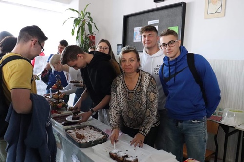 Wypieki osób związanych z samorządem były wręcz rozchwytywane, cieszyły się popularnością zarówno wśród uczniów, jak i nauczycieli naszej placówki. Wśród obiektów zainteresowania królowały m.in. karpatki, szarlotki, babeczki, ciasta snikersowe, krówkowe, toffi, brownie, ciapaki. Przez cały dzień stoisko witało tłumy smakoszy i dopiero po 5 lekcji praktycznie opustoszało. Sprzedawanie ciast przyniosło dochód około pięciuset złotych, a w puszce na datki znalazło się prawie 50 zł. W imieniu całego samorządu pragniemy serdecznie podziękować osobom, które przygotowały wypieki i tym, które kupiły choćby najmniejszy kawałek.
