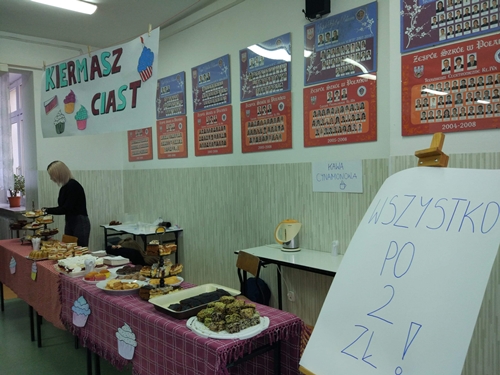 Wracając do kolebki organizacji naszego działania, to na korytarzu szkolnym ciasta wyprzedały się w błyskawicznym tempie. Proces przybywania pieniędzy w słoiku po kawie (służącym jako skarbonka) był wprost proporcjonalny do upływu czasu. Ciasta zostały rozłożone tuż przed dzwonkiem na pierwszą przerwę. A kiedy zniknęły?