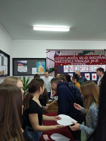 Andrzej to imię, które niejednemu zapadnie w pamięć. Nasza społeczność celebrowała imieniny tego szczególnego imienia. Naprzeciw ciast ustawiono ławki i zaaranżowano kącik wróżbiarski. Sekcja organizacyjna zadbała o tradycyjne wróżby andrzejkowe. Nie zabrakło najrozmaitszych form przepowiadania przyszłości. Miłosne serca, losowanie liczb, tarot czy wróżenie z ręki to tylko część atrakcji, które zostały przygotowane przez Karola Bobera, Michała Jaskółę, Kacpra Miskę, Natalkę Olejarnik, Natalkę Zabłocką, Oliwię Bobrowską, Oliwię Reczko, Natalkę Bednarską i Maję Grzyb. Oczywiście nad całym przedsięwzięciem czuwali profesjonalni wróżbici: Dawid Gwóźdź i Marcin Kasperek.