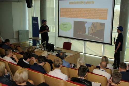 Mieszko i Piotrek, otrzymali czeki po 3000 PLN, które przeznaczą (zgodnie z umową stypendialną) na zakup laptopów oraz wyjazd naukowy do Zjednoczonych Emiratów Arabskich do Abu Dhabi i Masdaru (rozwiązania stosowane w tych miastach stanowiły inspirację do Ich pracy) oraz odwiedzą EXPO 2020 (Wystawa Światowa w Dubaju).