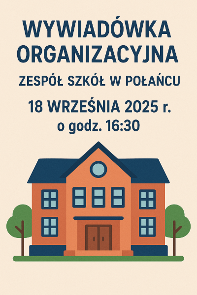 Zapraszamy rodziców i opiekunów naszych uczniów na wywiadówkę organizacyjną, która odbędzie się w Zespole Szkół w Połańcu 18 września 2025 r. o godzinie 16:30.