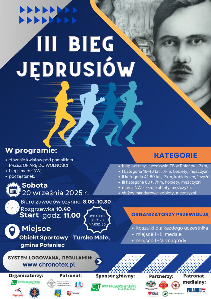 Już 20 września 2025 r. odbędzie się wyjątkowe wydarzenie sportowo-patriotyczne – III Bieg Jędrusiów. Impreza rozpocznie się złożeniem kwiatów pod pomnikiem Przez Ofiarę do Wolności, a następnie uczestnicy wezmą udział w biegach na różnych dystansach oraz w marszu nordic walking.