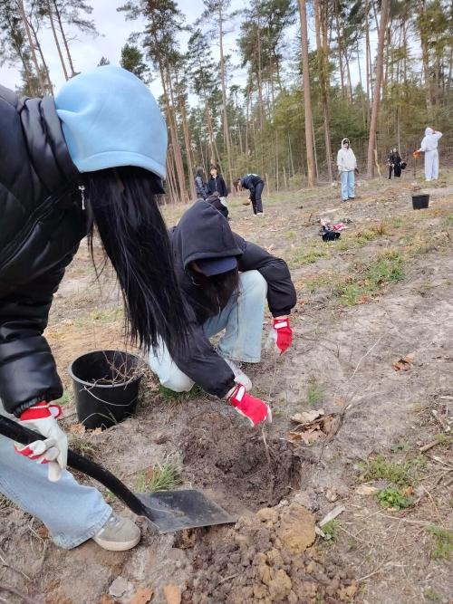Uczniowie mieli okazję zdobyć praktyczne umiejętności i przekonać się, jak wygląda proces sadzenia drzew od podstaw. Było to cenne doświadczenie, które uczy odpowiedzialności za przyrodę i pokazuje znaczenie wspólnych działań na rzecz środowiska.