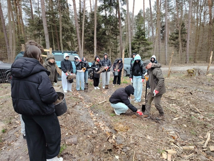 8 kwietnia uczniowie klas ochrony środowiska wzięli udział w wyjątkowej akcji sadzenia drzew, zorganizowanej we współpracy z wolontariuszami Enei Elektrowni Połaniec oraz leśnikami z Nadleśnictwa Staszów. Wspólnie wyruszyli w teren, aby posadzić młode dęby i buki, przyczyniając się do ochrony środowiska naturalnego.