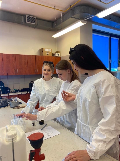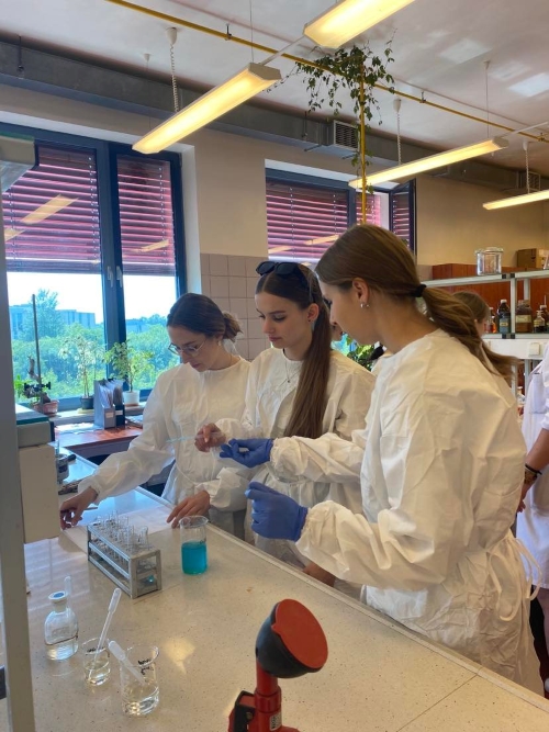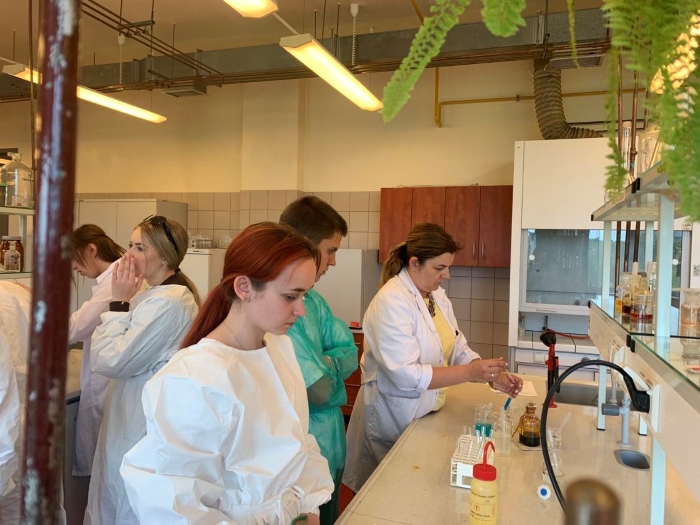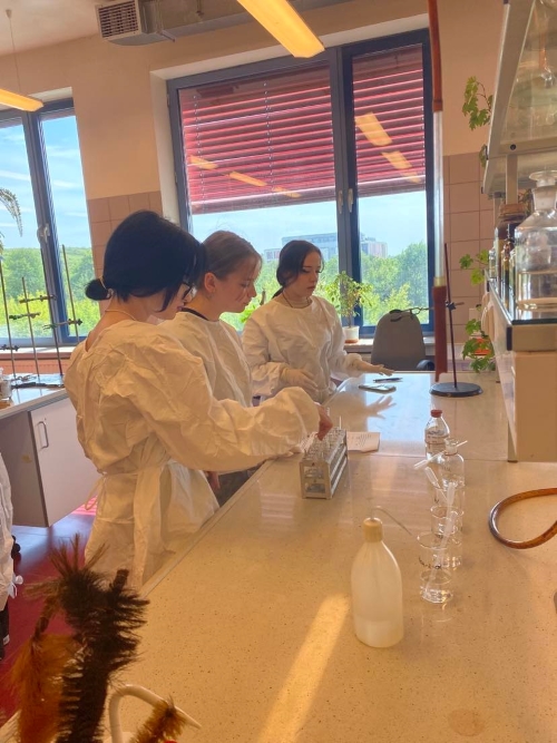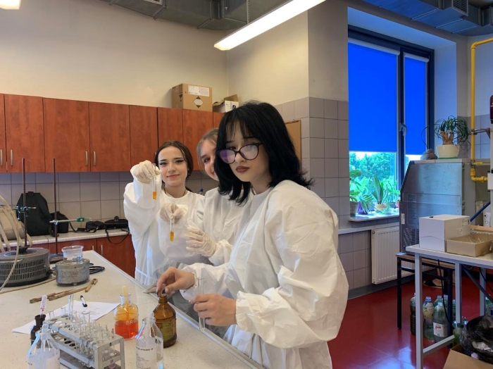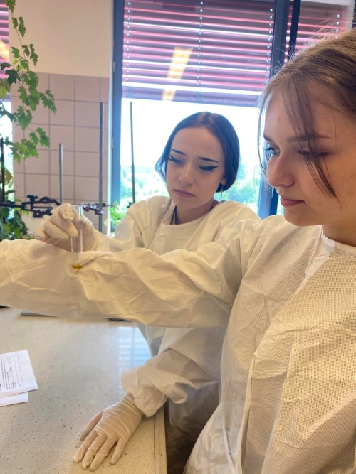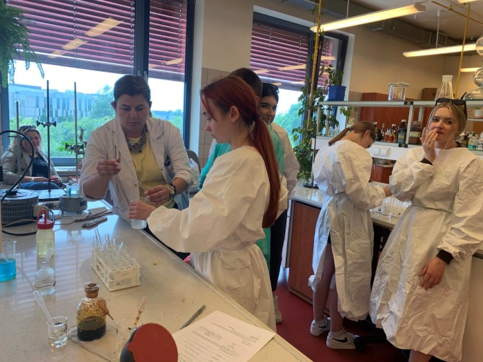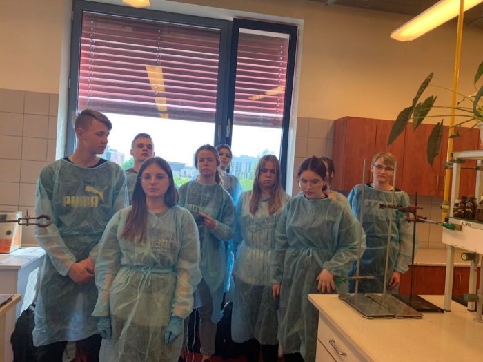 6 czerwca 2023 klasy 3abLO i 1bLO udały się na Uniwersytet im. Jana Kochanowskiego w Kielcach, aby na własne oczy przekonać się, czym różnią się od siebie grupy funkcyjne. Część z nas poszła do laboratorium, a pozostałych oprowadzono po instytucie chemii, gdzie wykładowca przybliżył im, na czym polegają prace w danych pokojach. W tym czasie młodzież miała okazję oglądać gamę kolorów w płomieniu, który zmieniał barwę dzięki dodawanym pierwiastkom.