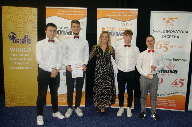 Inova Croatia 2023 - złoty medal oraz 2 nagrody specjalne: NORTON UNIVERSITY z Kambodży oraz IBS Global - Innovative Business Solutions (udział wynalazku chłopaków w konkursie Macao International Innovation & Invention Exposition w Chinach)