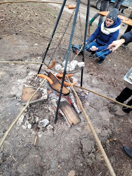 Po zakończonej pracy przyszedł czas na odpoczynek przy ognisku. Wspólne pieczenie kiełbasek i ziemniaków stworzyło okazję do integracji oraz rozmów w miłej atmosferze.