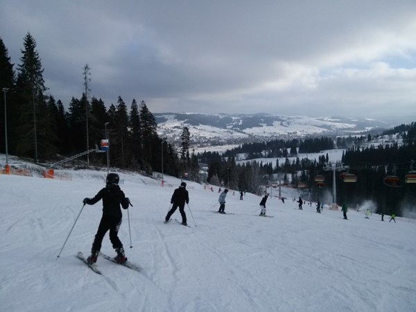 Sezon zimowy rozpoczęty! Szkolny wyjazd narciarski - niezwykle intensywne 2 dni: SKI KOZIENIEC (prawie sami) i KOTELNICA (w wersji 8 czynnych krzesełek) i na dodatek "szał zmęczonych ciał" w GORĄCYM POTOKU w Szaflarach i TERMIE BANIA w Białce. Ponad 30 uczestników, niezłe efekty szybkiego szkolenia - po 1,5 h od "zera" do "na długim orczyku" bez leżenia, ... a na drugi dzień mocno stroma "czerwona" z emocjami ... OK, trochę mnie poniosło :). Ale ... daliście radę!